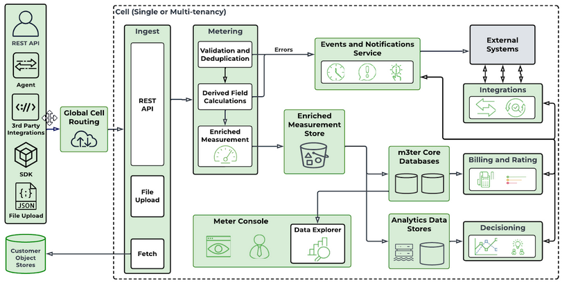 This diagram gives an overview of how usage data fits into the wider m3ter platform: