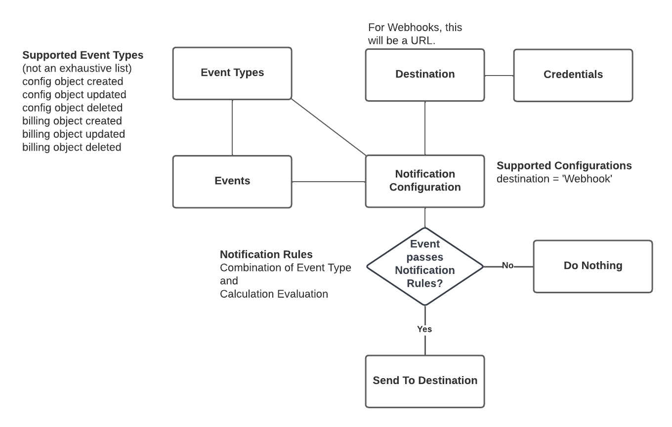 - If the calculation evaluates to true, a Notification instance for the Event is created and is sent to the configured Outgoing Webhook.
