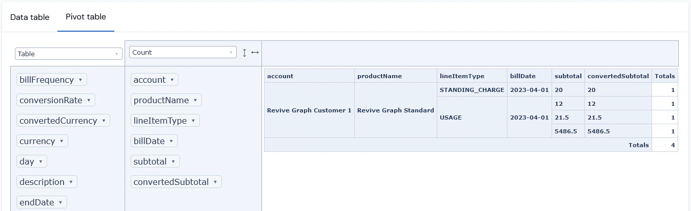 You can review the Billing data returned for your query in a Pivot table: