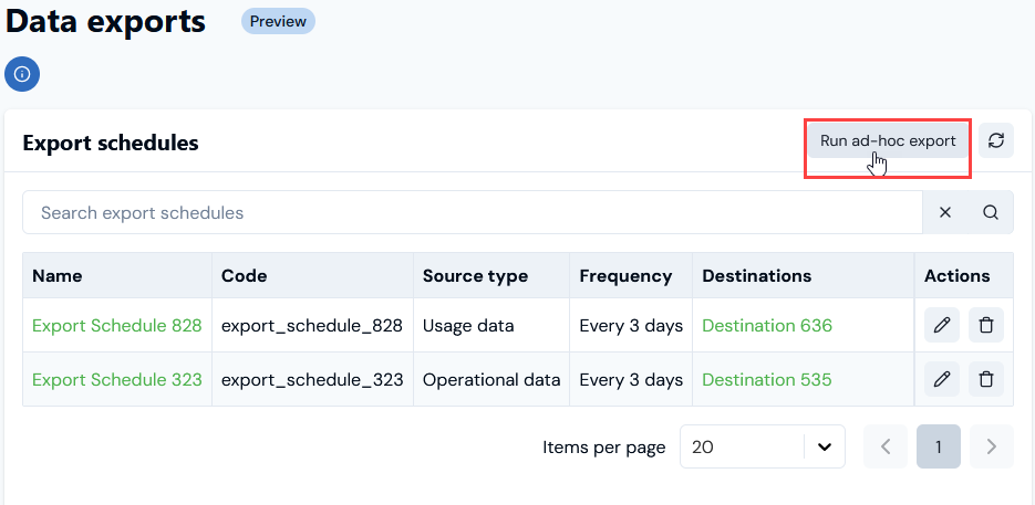 - When you have entered all details for the ad-hoc data export, select Run ad-hoc export: