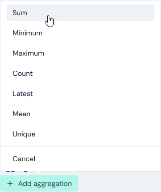 - For the current example, we’ve applied a Sum Aggregation to the numeric data field on the selected Meter.