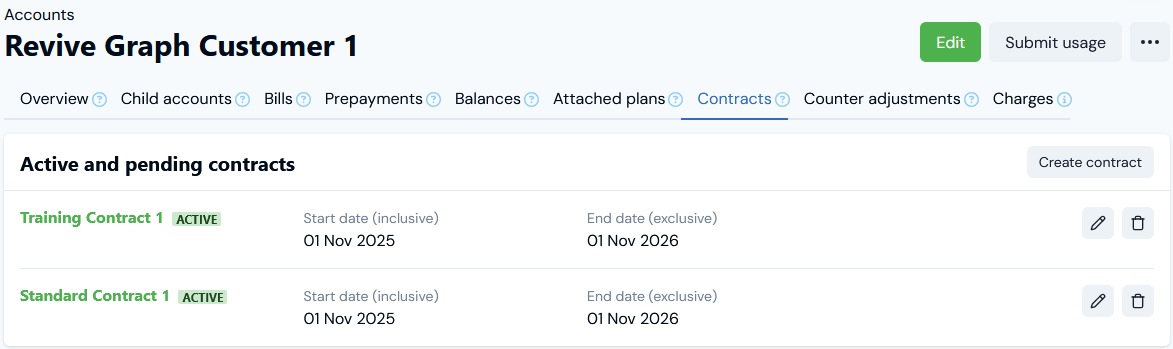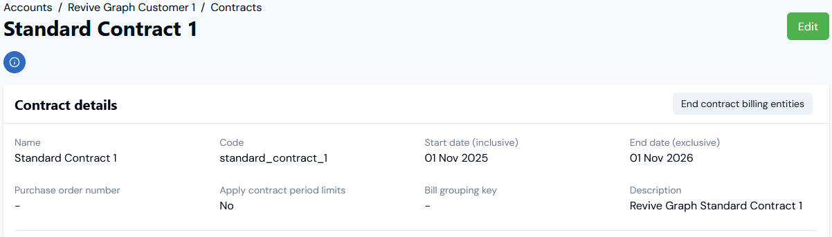 - For billing one-off Charges you’ve created for the Account - you must add those Charges to the Contract.