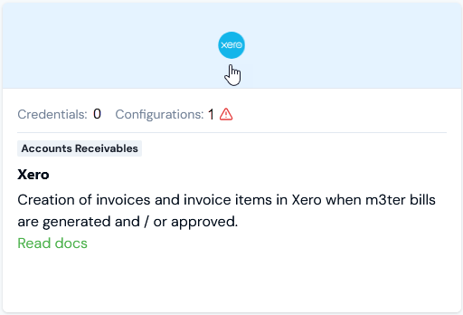 You can quickly set up a native Xero integration from the Configurations page in the Console. To define a m3ter - Xero integration:- Select Integrations: