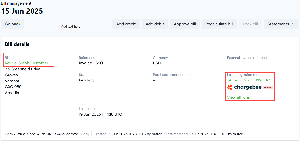 For Native Integrations for sending Bills out to your Account Receivable systems, links are provided on the Bill details pages of end-customer Accounts configured for the integration: