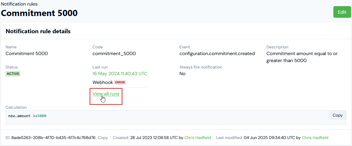 Accessing Runs for Notification Webhook Integrations