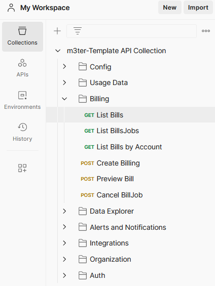 - The m3ter-Template API Collection is imported into your Workspace: