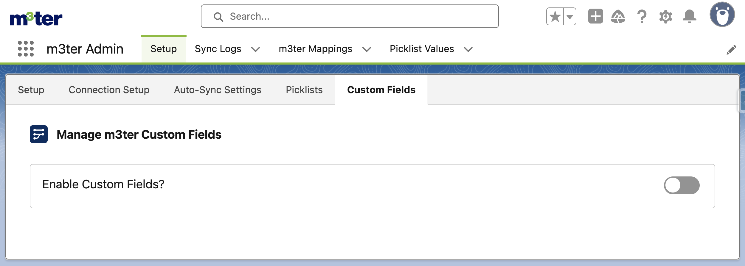 - Use the Enable Custom Fields? switch to turn the feature on.