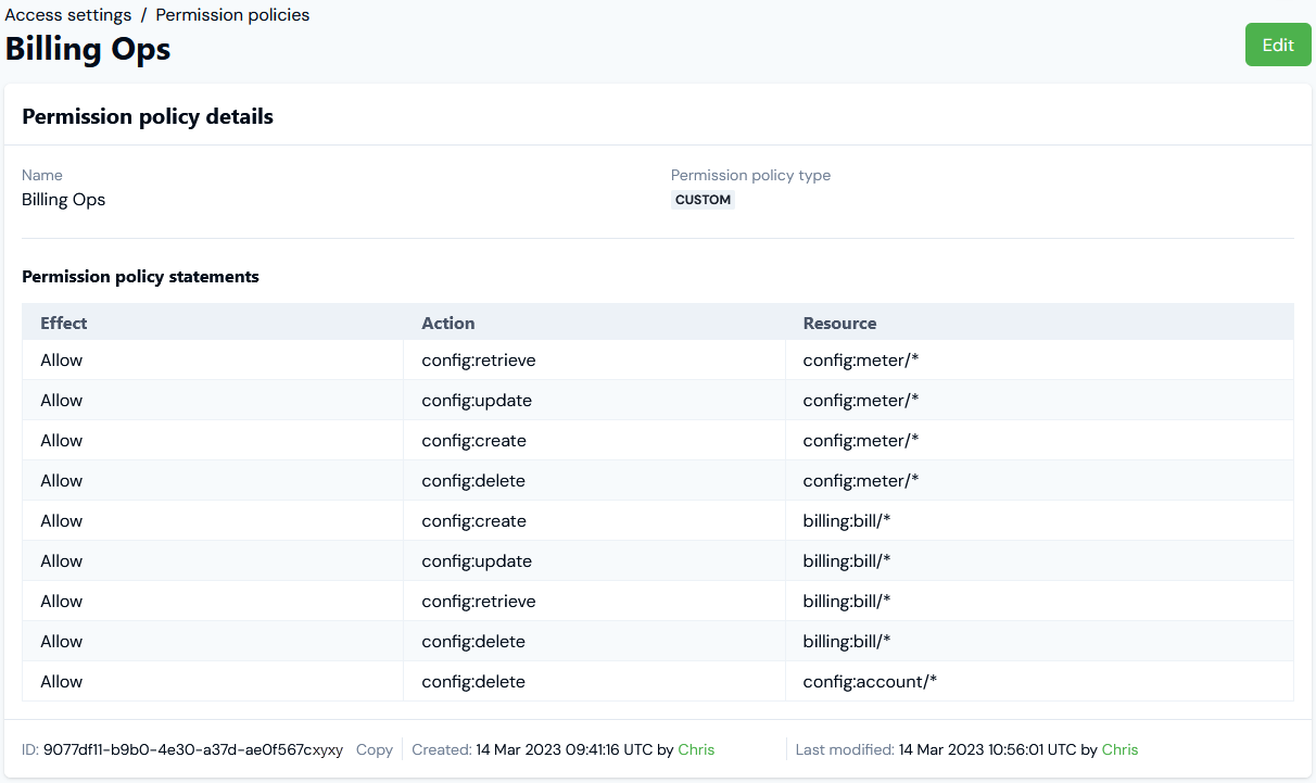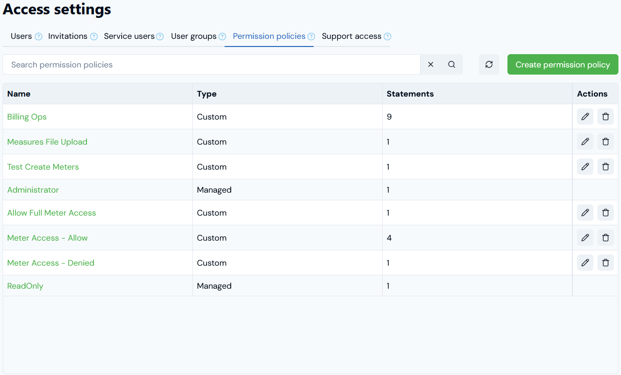 - If you want to edit a Permission Policy, return to the Permission policies tab and select the Edit icon: