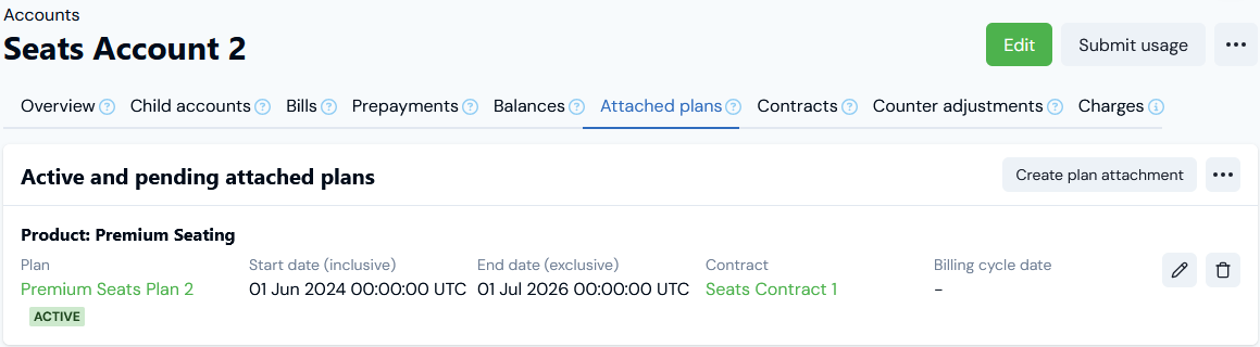 - Note we’ve selected dates for the Plan Attachment - for the period the Plan is active for the Account - that correspond with the period we defined for the Counter pricing to be applied to the Plan.