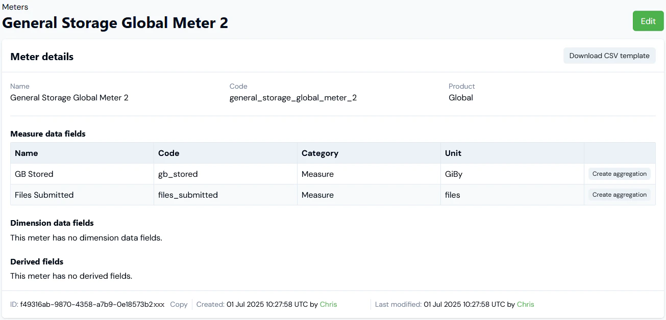 - When you complete the Aggregations>Create workflow, you are returned to the Meter details page.